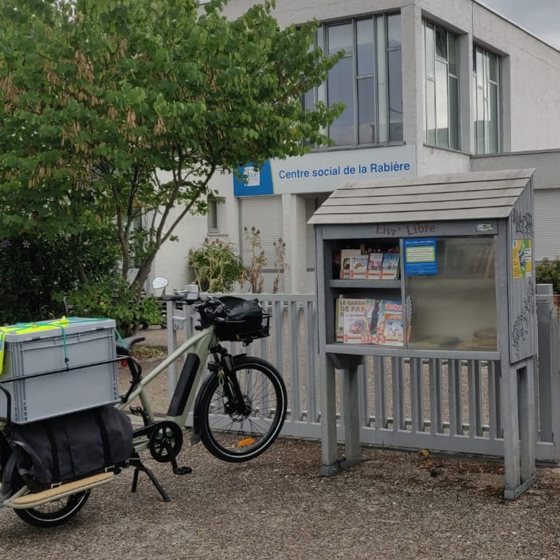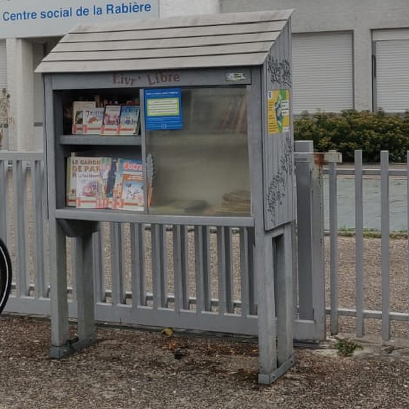 SITUATION de la BOÎTE à LIRE : Rue de la Rotière, devant l’entrée du Centre social.